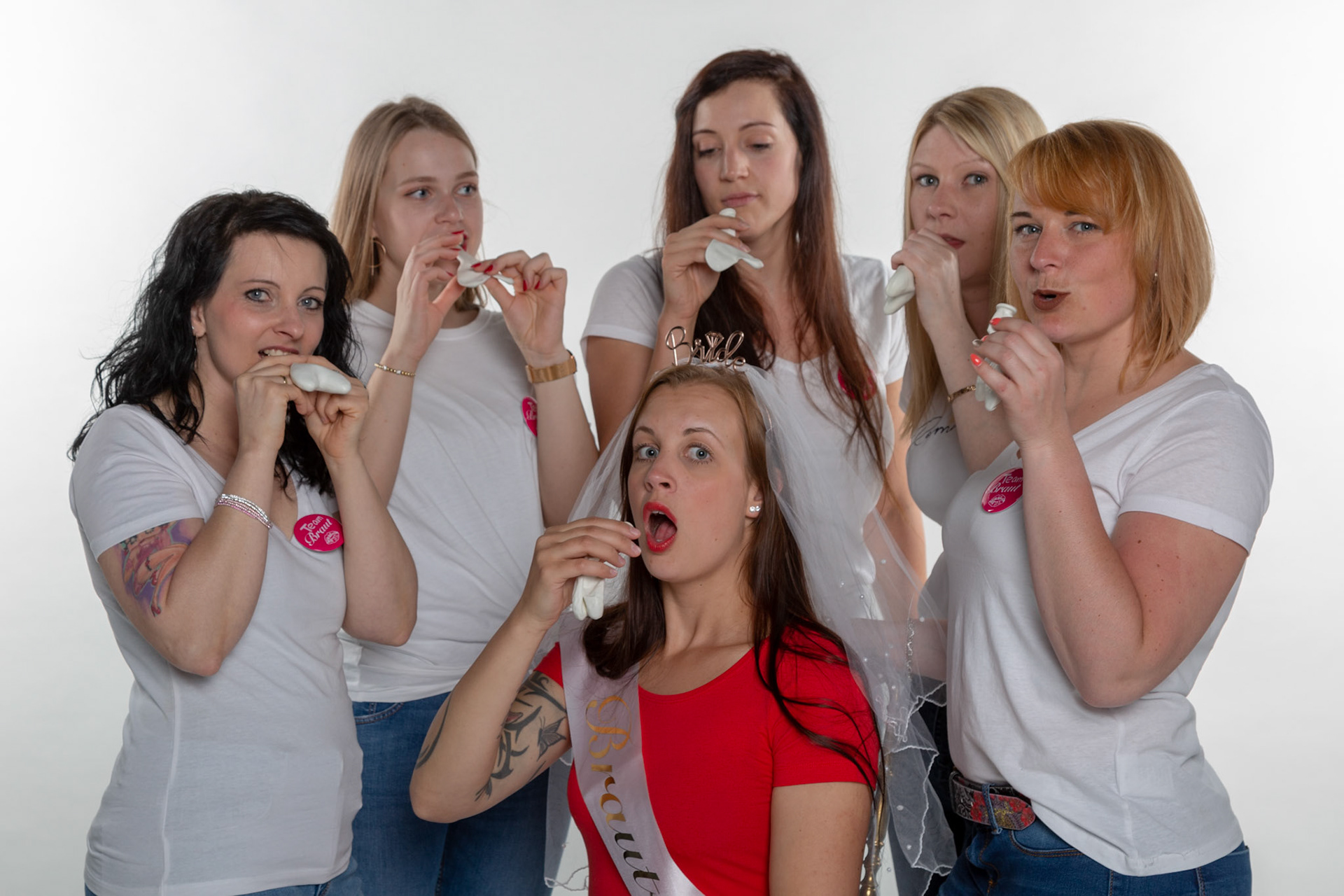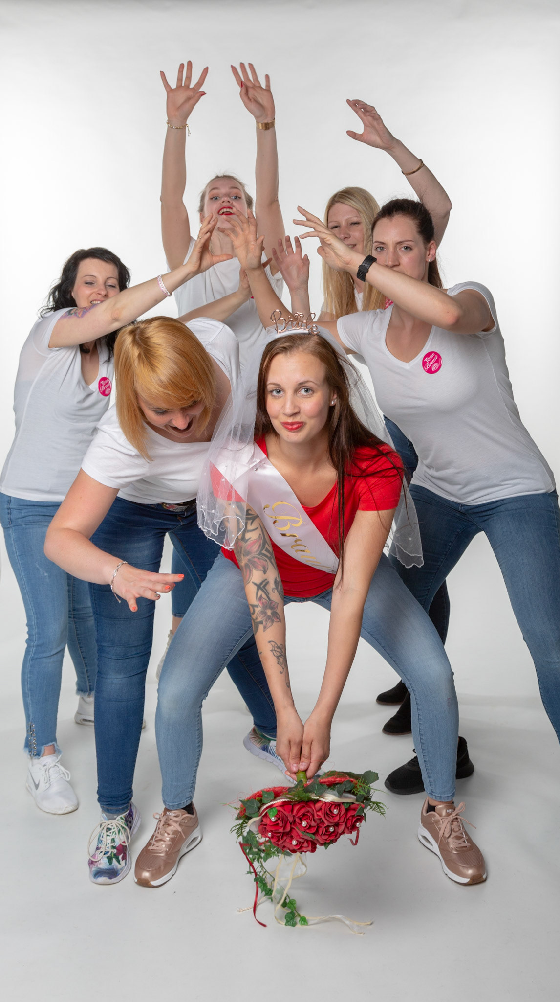 Junggesellenabschied mit einem Fotoshooting in unserem Fotostudio. Info: Unser Fotostudio wird für das Fotoshooting so eingerichtet, dass witzige Fotos entstehen.
